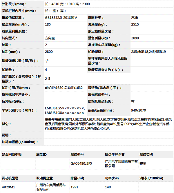 公告型號(hào) SLT5030XJEGC1W