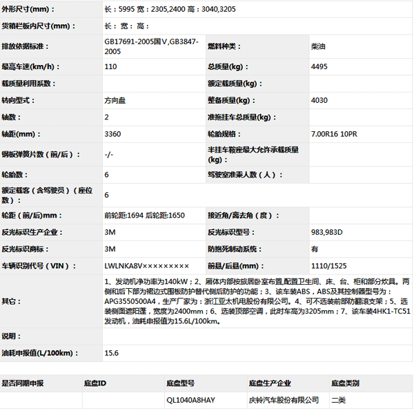 公告型號 QL5040XLJA8HA