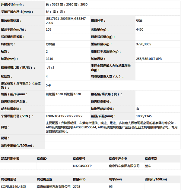 公告型號 JYG5044XKC