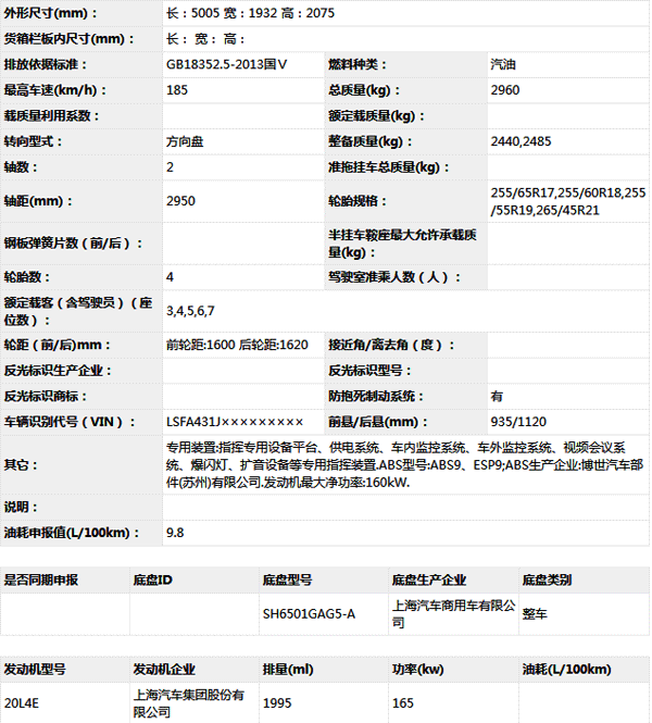 上汽大通SH5031XZHGAG5-A指揮車