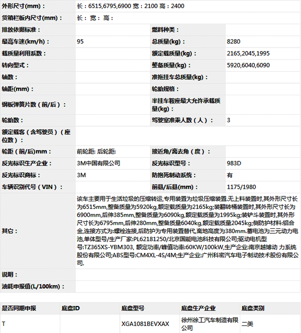 公告型號 XZJ5080ZYSNBEV