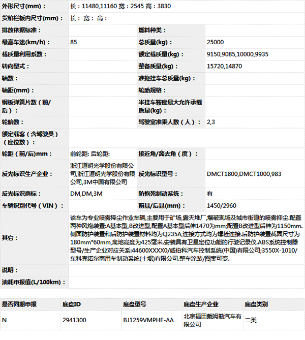 公告型號 BJ5253TDYE5-H1
