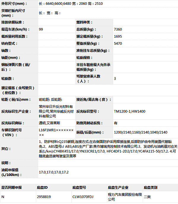 公告型號(hào) CL5070ZYSA5