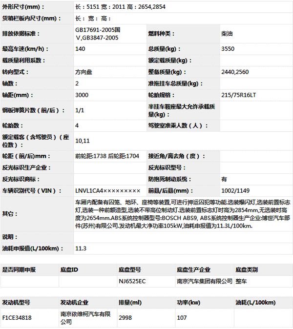 南京汽車暢達(dá)牌NJ5049XQC5E囚車