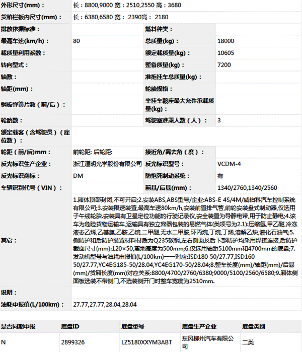 公告型號(hào) HCQ5180XRQLZ5