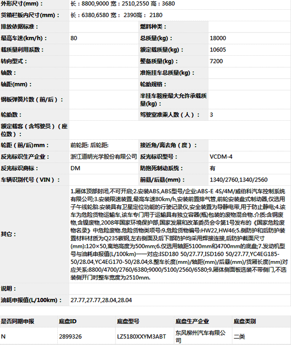 湖北五環(huán)華通牌HCQ5183XZWLZ5雜項危險物品廂式運(yùn)輸車