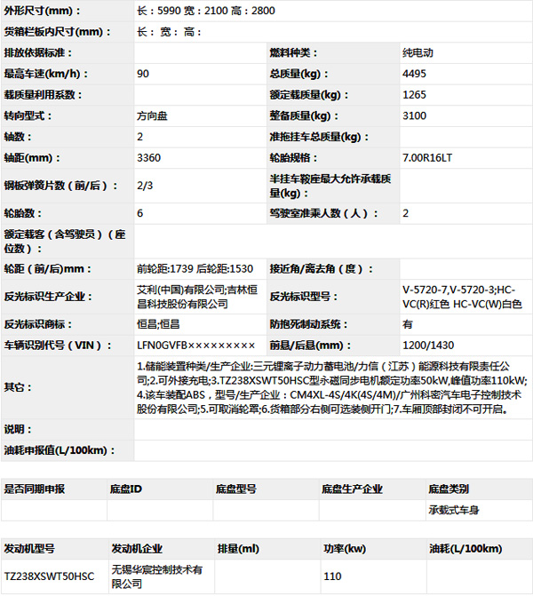 公告型號 CA5041XXYBEV21