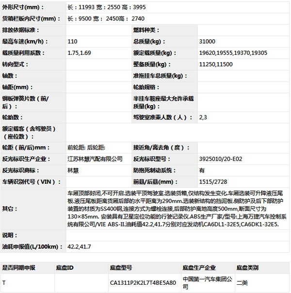 公告型號 CA5311XXYP2K2L7T4E5A80