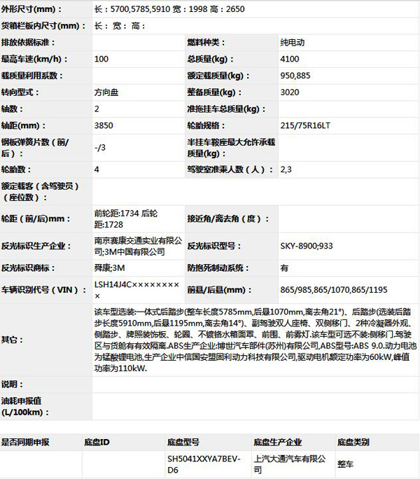 上汽大通SH5041XLCA7BEV-D6純電動(dòng)冷藏車
