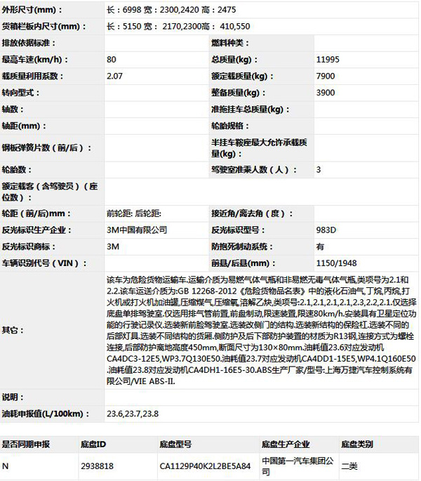 公告型號(hào) CA5129TQPP40K2L2E5A84