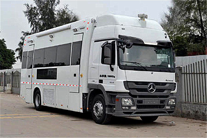 | 備注 | 左右側(cè)防護及后防護均為整體裙板結(jié)構(gòu),后防護離地高度為530mm.該車可選裝方形廂體,導(dǎo)流罩,后爬梯,后踏板,液壓升降尾板,液壓支撐系統(tǒng).車頂可選裝設(shè)備平臺,后艙空調(diào),探照攝像系統(tǒng),設(shè)備升降系統(tǒng)(可配套廣播、攝像、照明、探測、天線等設(shè)備),衛(wèi)星天線.車輛兩側(cè)及后部可選裝艙門,卷簾門,明窗,封閉車廂,LED顯示屏,遮陽棚.選裝液壓升降尾板時的整車長度為10200mm.選裝設(shè)備平臺、后艙空調(diào)時的整車高度為3625mm.選裝設(shè)備升降系統(tǒng)時的整車高度為3760mm.選裝衛(wèi)星天線時的整車高度為3950mm.選裝探照攝像系統(tǒng),設(shè)備升降系統(tǒng),衛(wèi)星天線,整備質(zhì)量分別為:13500kg,15000kg,16000kg.后車廂內(nèi)另外固定3-16個工作坐椅,只允許停車后供工作人員操作儀器和設(shè)備時使用.ABS型號: EB5003,生產(chǎn)廠家: WABCO. | ||