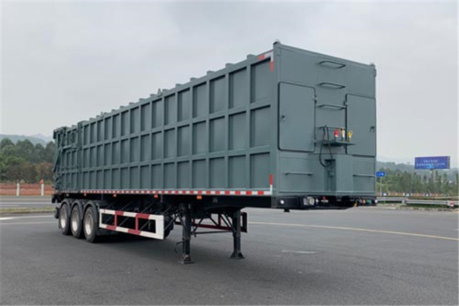 | 備注 | 1.車廂頂部封閉,不可開啟.2.該車安裝側(cè)面防護裝置,材料為:Q235,與車身連接方式為:螺栓連接.后下部防護裝置的材料為:Q235,與車身連接方式為:螺栓+焊接連接,離地高度為:490mm,斷面尺寸形狀為:φ127mm×8的圓管.3.ABS系統(tǒng)型號:XH-GQ4S2M-E01,生產(chǎn)廠家:廣州市西合汽車電子裝備有限公司.4.壓縮式垃圾半掛車用于垃圾的裝卸轉(zhuǎn)運,安裝有液壓裝置,對推板的卸料和后門的啟閉提供動力和控制。 | ||