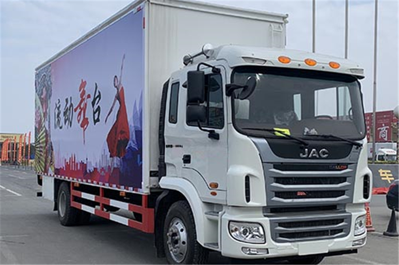 | 備注 | 車廂頂棚封閉,并采用衍架結(jié)構(gòu),可升降,車廂兩側(cè)板可展開,與頂棚形成整車舞臺頂棚;活動舞臺板可折疊于車廂內(nèi),通過展開裝置展后與固定舞臺臺面形成整車舞臺臺面;底盤大梁部分設有支撐裝置。該車是進行舞臺文藝表演的專用車輛。側(cè)防護采用冷彎型鋼/Q235,焊接連接,后防護采用冷彎型鋼/Q235,焊接連接,后防護截面高度尺寸120mm, 截面寬度尺寸50mm,下邊緣離地高度500mm。ABS控制器型號/生產(chǎn)企業(yè):VIE ABS-II/浙江萬安科技股份有限公司,CM4XL-4S/4M/廣州瑞立科密汽車電子股份有限公司。整車長/軸距/后懸對應(mm)關(guān)系為:8980/5000/2580,9980/5700/2880。隨底盤選裝駕駛室外觀樣式。 | ||