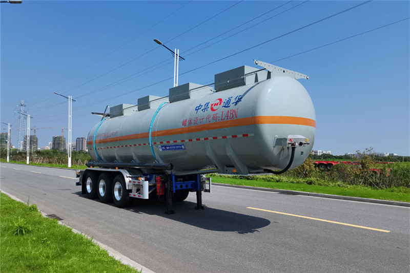 | 備注 | 罐體總?cè)萘?8.5立方米,罐體有效容積27.1立方米.罐體外形尺寸(mm):外罐長9765,直徑前φ1960后φ2110.危險貨物運(yùn)輸車輛的類型為:FL型,準(zhǔn)運(yùn)介質(zhì)的最大密度為1155千克/立方米.該車裝空氣懸架,選裝側(cè)面尾部操作箱、側(cè)面防護(hù)工具箱位置,選裝擋泥板樣式,選裝尾部標(biāo)志板位置,選裝滅火器安裝位置,選裝護(hù)肩及與之匹配的扶手,選裝集液槽數(shù)量、位置及與之匹配的扶手,選裝后部上橫梁材料,選裝軟管存放箱、側(cè)面結(jié)構(gòu),選裝頂部燈支架樣式,選裝前部帶爬梯、正后不帶爬梯及正后新爬梯樣式.ABS廠家/型號:威伯科(上海)管理有限公司/4005000880,浙江萬安科技股份有限公司/VIE-TABS Ⅱ(4S2M),廣州瑞立科密汽車電子股份有限公司/CM2XL-4S/2M,廣州市西合汽車電子裝備有限公司/XH-GQ4S2M-E01.EBS廠家,型號:克諾爾商用車系統(tǒng)企業(yè)管理(上海)有限公司,K11061XVXX或瀚德汽車產(chǎn)品(蘇州)有限公司,4S2M或威伯科(上海)管理有限公司, 4801020640或浙江萬安科技股份有限公司,VIE TEBS-I或廣州瑞立科密汽車電子股份有限公司,CM-TEBS.側(cè)防護(hù)材料為鋁合金,螺栓連接;后防護(hù)材料Q235,螺栓連接,后防護(hù)斷面尺寸65×150mm,離地高495mm.采用適用于牽引危險品運(yùn)輸半掛車的牽引車. | ||