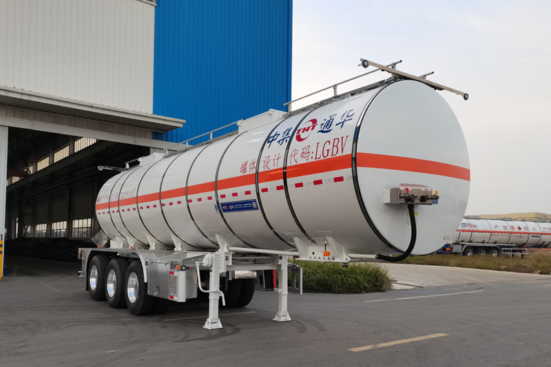 罐體有效容積19.9立方米,罐體總容量20.55立方米.罐體外形尺寸(mm):外罐長9750,直徑φ2008,內罐長9450,直徑φ1708.危險貨物運輸車輛的類型為:FL型,準運介質的最大密度為1635千克/立方米.該車裝空氣懸架,選裝側面尾部操作箱、側面防護工具箱位置及樣式,選裝擋泥板樣式,選裝尾部標志板位置,選裝滅火器安裝位置,選裝集液槽數量及位置、護欄樣式、罐頂走道,選裝軟管存放箱、側面結構,選裝上橫梁材料,選裝蒙皮、深淺封頭及燈支架.選裝正前爬梯,選裝正后爬梯,選裝正后閥門箱及位置,選裝右側防護不帶工具箱,左側帶工具箱,選裝支腿支架樣式.ABS廠家/型號:威伯科(上海)管理有限公司/4005000880,浙江萬安科技股份有限公司/VIE-TABS Ⅱ(4S2M),廣州瑞立科密汽車電子股份有限公司/CM2XL-4S/2M,廣州市西合汽車電子裝備有限公司/XH-GQ4S2M-E01.EBS廠家,型號:克諾爾商用車系統(tǒng)企業(yè)管理(上海)有限公司,K11061XVXX或瀚德汽車產品(蘇州)有限公司,4S2M或威伯科(上海)管理有限公司,4801020640或浙江萬安科技股份有限公司,VIE TEBS-I或廣州瑞立科密汽車電子股份有限公司,CM-TEBS.側防護材料為鋁合金,螺栓連接;后防護材料Q235,螺栓連接,后防護斷面尺寸65×150mm,離地高495mm.采用適用于牽引危險品運輸半掛車的牽引車. |