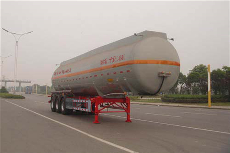 罐體有效容積40立方米,罐體總容量42立方米.罐體外形尺寸( mm):長11065外徑前φ2208/后φ2308.危險貨物運輸車輛的類型為:FL型,準運介質的最大密度為790千克/立方米.選裝擋泥板,側防護,選裝滅火器安裝位置及樣式,選裝爬梯可在罐體前部或后部或前后都有,選裝護肩及與之匹配的扶手,選裝集液槽數量、位置及與之匹配的扶手,選裝握手盒結構,選裝側面尾部操作箱,選裝側面工具箱樣式,選裝尾部標志板安裝位置, 選裝軟管存放箱、側面結構及穿線管,選裝握手盒結構,選裝分段裝配式大梁和T型梁結構、支腿支架樣式、側防護支架樣式,選裝后部上橫梁結構、材料及牌照板位置,選裝正前、正后爬梯及頂部燈支架新結構,該車裝空氣懸架.ABS廠家,型號:威伯科(上海)管理有限公司,4005000880或廣州瑞立科密汽車電子股份有限公司,CM2XL-4S/2K(4S/2M)或浙江萬安科技股份有限公司,VIE-TABSⅡ或廣州市西合汽車電子裝備有限公司,XH-GQ4S2M-E01或翰德汽車產品(蘇州)有限公司,364570001.EBS廠家,型號:克諾爾商用車系統企業(yè)管理(上海)有限公司,K11061XVXX或瀚德汽車產品(蘇州)有限公司,4S2M或威伯科(上海)管理有限公司, 4801020640或浙江萬安科技股份有限公司,VIE TEBS-I或廣州瑞立科密汽車電子股份有限公司,CM-TEBS.側防護材料為鋁合金,螺栓連接,后防護材料為鋁合金或Q235,螺栓連接,后防護斷面尺寸80×150mm,后防護材料為Q235,螺栓連接,后防護斷面尺寸65×150mm,離地高495mm.采用適用于牽引危險品運輸半掛車的牽引車. |