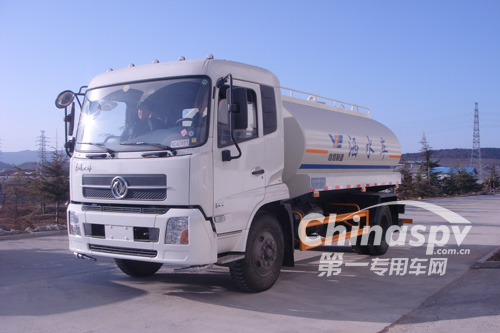 本車以專用取力器為動力源,有傳動軸將動力傳給水泵,能使水泵在額定轉速下運轉,通過操作控制系統(tǒng)及管網將自然水吸入罐內或將罐內的水按設定管路排出罐外,從而完成各項功能。其功能如下: