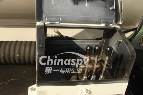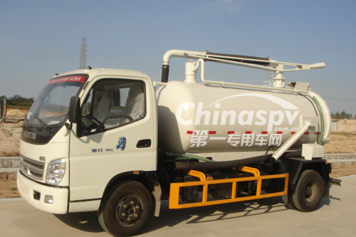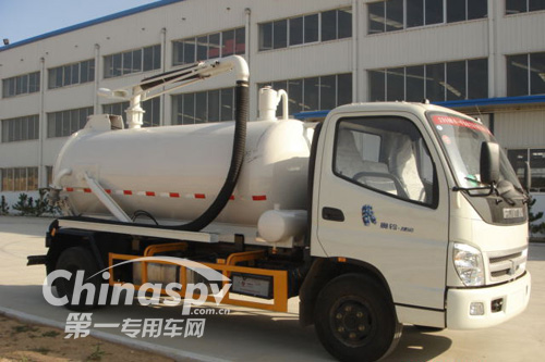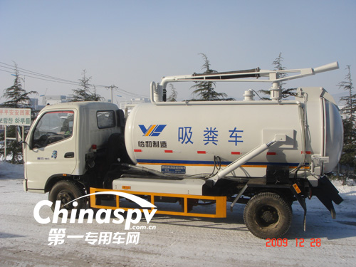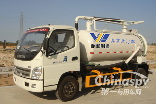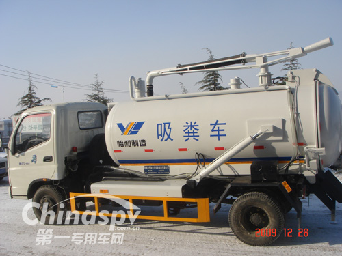 該吸污車由取力器、真空吸污泵、罐體、液壓部分,管網(wǎng)系統(tǒng)等組成,并裝有真空壓力表、視糞管,洗手水罐,抽吸吊桿總成等機(jī)構(gòu)。該車罐蓋的開(kāi)合鎖緊全部通過(guò)液壓系統(tǒng)實(shí)現(xiàn),操作快速簡(jiǎn)便。
